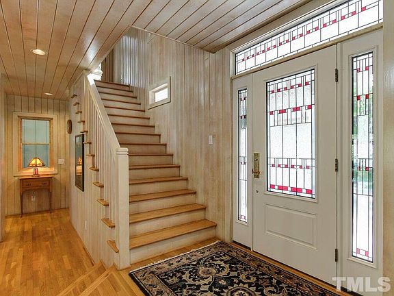 Tom Gipson designed custom built on over 3 acres in prime N. Raleigh location. Timeless design. Elegant and cozy with Craftsman features. Custom stained glass windows, custom fixtures and woodwork- a year completing to perfection. Two story detached garage. Decks, balconies from which to view serene woods and turkey and deer feeding. Adjoins Falls lake land. Can follow beautiful Sexton Creek along paths to Falls Lake. Beautiful adjoining recorded approx 4 acre lot for combined price of $925,000.