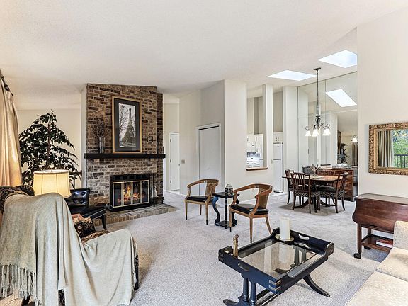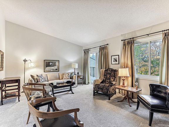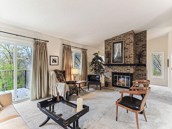 Wind your way to your private wooded pond view setting. Towering mature trees bank this quiet cul-de-sac. A rare find! Move right into this freshly painted and carpeted 2 bedroom, 2 bath end unit with 2 car attached garage. New deck overlooks cul-de-sac and wooded pond. Vaulted ceilings and open floor plan. Spacious living/dining rooms with full brick 2-sided wood burning fireplace. Attractive kitchen with plenty of room for storage, prep, and entertaining. Both bedrooms are 16 x 11 and have private bathrooms and walk-in closets. Attached garage with storage is awesome, especially in colder months. Inviting foyer for MN hellos/goodbyes. Lower level family room offers versatile space for TV, office, or exercise space! Really a gem of a property located in an amazing development. West Bloomington offers so much from great restaurants to top notch schools and never-ending trails and parks!