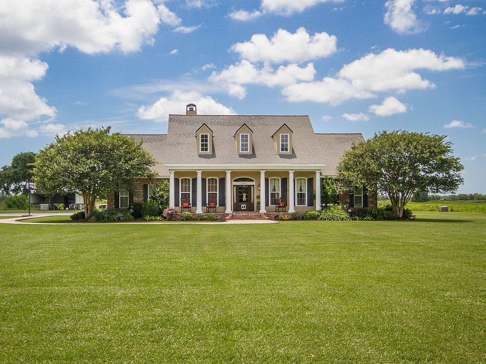 HIGH & DRY IN 2016 FLOOD. Custom Acadian Style home nestled on 11.14 Acres in the country. Brick, stucco, vinyl exterior. Inside, custom cherry cabinets, real brick floors, brick wall with arches, and carpet. 10-12 foot ceilings, granite tops, fireplace, office and/or 4th Bedroom. Fiberglass Saltwater pool 16x32 with 30x40 (1,200 SF not included in Living) pool house/apt. 3 Car Garage. 24x30 covered parking for equipment storage outside. Much more House than 2,515 SF. Schedule a showing today.