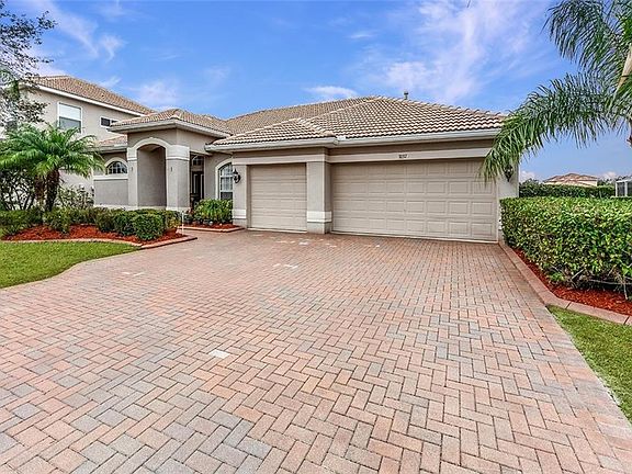 Immaculate 4 Bed 3 Bath in sought after neighborhood of River Place just South of Tara. This home is very close to the River Place large clubhouse, fitness center, large heated community pool over looking a huge lake, playground, wooded hiking trails as well as launch access to the Braden river for kayaks & canoes. Also near the new UTC shopping Mall & famous beaches & restaurants. No CDD fees. Low HOA. Upon entering the home, you are greeted with a bright & open foyer, ceramic tile floors & affordable elegance. Natural light cascades through your open kitchen, with wood cabinets, roll-out drawers & a separate breakfast nook. An inviting breakfast bar allows for extra seating if needed. A formal dining room & living room provide the perfect areas for entertaining while the separate family room allows for casual relaxation. Enter your master bedroom featuring a large en-suite that provides his & her vanities, a garden tub & a separate large walk-in shower. You will quickly see how this split floor plan has a place for everyone to have privacy. The family room & living room lead out to the spacious covered lanai overlooking a beautiful yard with plenty of room to add a pool should you desire.