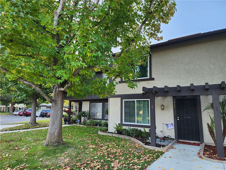 Welcome home!!! Light & Bright tastefully renovated, 3 bedrooms, 2 bathroom, 2 car garage, Bradford place community Towhouse. This home boasts a fabulous location in the community, close to guest parking and a view of the greenbelt. Inside the home features wood look ceramic tile flooring downstairs and in both bathrooms. Upstairs features a spacious suite of a bedroom with laminate wood flooring, walk in closet, private sink and bathroom access. Enjoy the interior custom paint colors and smooth ceilings (no popcorn) with beautiful crown molding throughout. Both bathrooms have been completely updated and all windows have been upgraded to dual pane vinyl. Like to entertain? Hang out with the family in your own private spacious covered patio area. Conveniently located near Shopping center's, Restaurant's and local schools. Best of all award winning Garden Grove unified Schools, Pacifica high school & Bell intermediate. Don't miss out on this one!