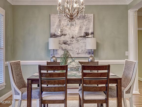 Very nice home located in desirable Lucia Point- convenient to all shopping at Mayfaire and Landfall- plus only 3.1 miles to Wrightsville Beach. All hardwood flooring throughout the entire home. Features include: Formal dining area-dentil molding-private office with French Doors-private master suite with walk-in closet- master bath with garden tub, walk-in tile shower and double vanity. Trey ceiling in Family Room- gas fireplace- built-in book shelves-opens to kitchen- granite countertops- double stainless steel undermount sinks- all stainless steel appliances and tile backsplash. Eat-in breakfast area. 2nd bedroom downstairs with walk-in closet. Upstairs- 2 more bedrooms plus a sitting/play/workout area. Large walk-in attic all floored for great storage. Gorgeous front and rear yard- very well maintained. Termite bait system. New roof 2019. Dehumidifier in crawl space. Painter 2019. This home is located at the end of the private cul-de-sac. The back yard is nice and private as it backs up to a wooded area. Sprinkler system front and back. Truly a wonderful, private setting!