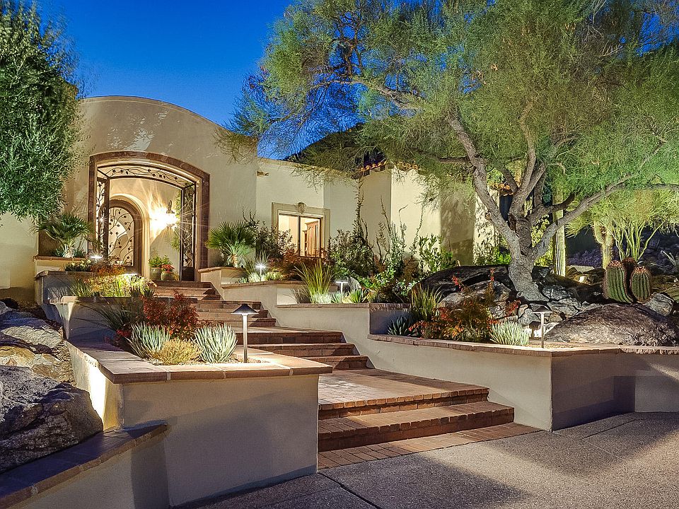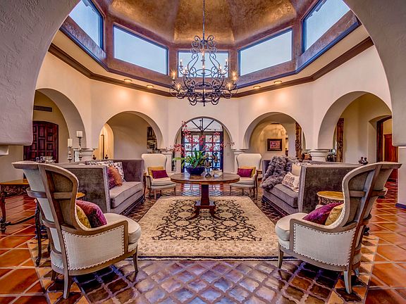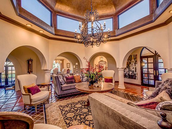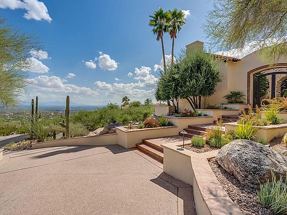 * VIEW VIDEO: https://vimeo.com/359564980 * Beautifully renovated & masterfully detailed one-story Santa Barbara style luxury home on coveted 3.7 acre mountain lot in Skyline Country Club Estates. Enjoy panoramic mountain, desert & sparkling city views. Architectural splendor & an impeccably executed design welcome you to the foyer/atrium - perfect for entertaining. Discover domed ceilings, inset floor tile designs, rich paneled doors, beamed ceilings, gourmet kitchen w/custom hood & cabinetry, performance appliances and walnut-top island, handcarved bookcases & bath cabinets, butler's pantry/laundry room, artist studio (office/fitness), 3 fireplaces & much more. Skyline Country Club offers 18 hole golf, tennis, fitness-center, fine & casual dining. 3rd GARAGE/TANDEM POSSIBLE. FURNISHINGS AVAILABLE.