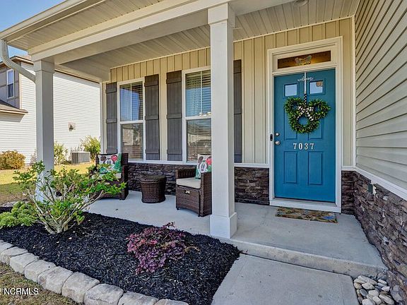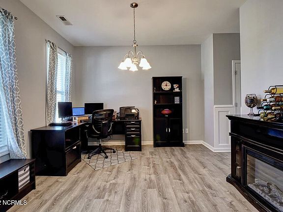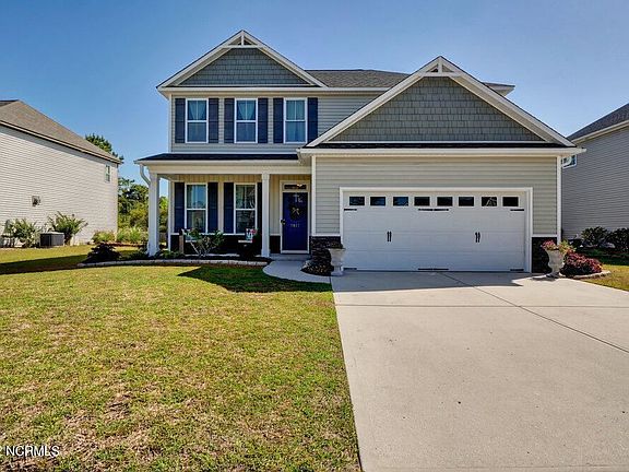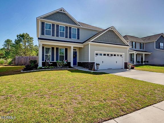 Come visit Grayson Park in Leland, North Carolina. A newer community that offers a clubhouse, pool, trails, playground, fitness center, and sidewalks. This 2000 sqft home has been meticulously maintained. A three bedroom 2.5 bathroom with new LVP floors, new subway tiles backsplash and wainscoting in kitchen and surrounding kitchen eating area - open concept built in 2013. Newer dishwasher and oven. Formal dining room off the kitchen and 9 foot ceilings downstairs with a 2 tier kitchen counter and breakfast nook for when not using the formal dining space. Upstairs is a bonus area as well as 2 spare bedrooms a full size bathroom, laundry room and oversize primary suite. Primary suite has trey ceilings, walk in closet, double vanity bathroom with large soaking garden tub and walk in shower. Back yard is fully fenced in with a patio. Behind the home is protected land that can not be built on. 140 is just off Mako Rd and 17 making easy access to Wilmington, the Airport, GE, etc.