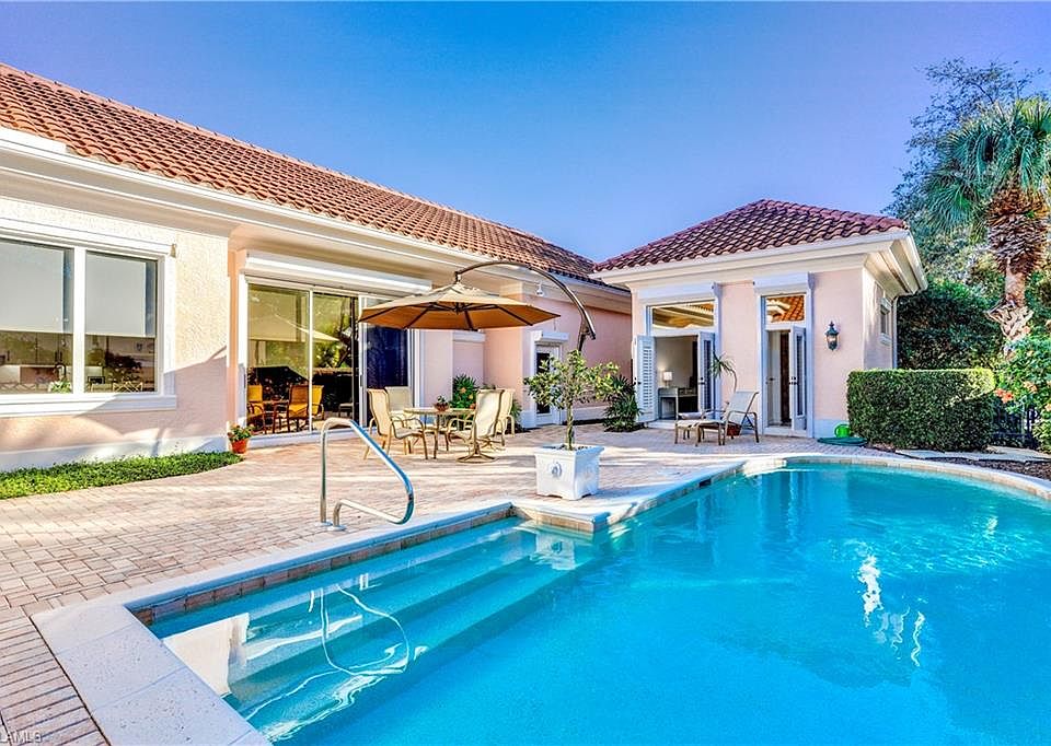 Just a few blocks from the beach and boardwalk of Pelican Bay, this exquisitely renovated detached coastal villa in the premier gated community of Isle Verde offers serene courtyard living with a unique private pool area and cabana. Inside, is an open floor plan with soaring vaulted ceilings as well as walls of glass through which natural light spills in, beckoning you to the outdoor living area. The home features a spectacular new gourmet kitchen with white quartz countertops and a generous open-concept island that gazes out over the great room where an elegant stone accent wall, linear fireplace and custom wet bar are focal points. This home is ideally located for the golf enthusiast who will enjoy expansive backyard views of the Pelican Bay Golf course greens. Other notable features of the home include a Lutron lighting system, all new flooring and HVAC system as well as new impact glass windows and shutters. Don't miss this magnificent home in Pelican Bay where residents enjoy world-class amenities such as private beach access, beach club, restaurants and more!