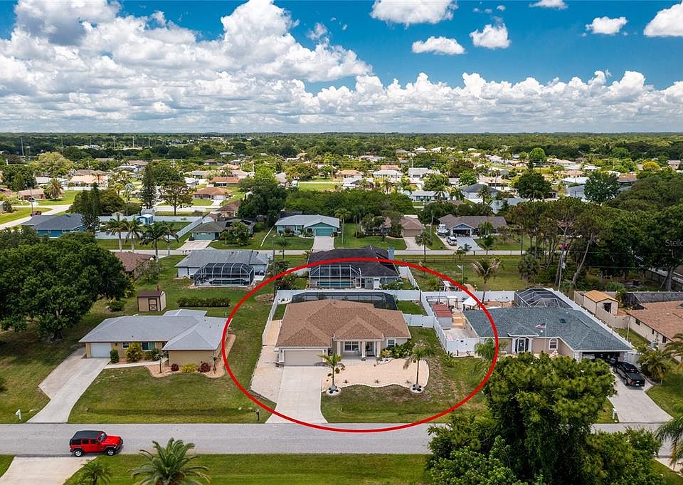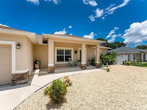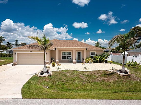 Make your dreams a reality with this 2017-built pool home in East Englewood! This home is located in an X flood zone, and is also offered with the option to purchase the furniture. Arrive to low-maintenance extensive landscaping and enter your home through the coastal blue glass door to emerge into your very own paradise. Soaring vaulted ceilings give this home an open and airy feel. Large neutral tone tile throughout this home makes cleaning and maintenance a breeze giving you more time to enjoy everything the area has to offer. If cooking is your passion, you will truly enjoy the gleaming granite countertops, stylish tiled backsplash, closet pantry, suite of stainless-steel appliances, a breakfast bar, and the convenience of the open plan to the dining room and great room, perfect for entertaining! This floor plan not only offers open spaces but split bedrooms, providing privacy for both you and your guests, who will never want to leave! In your master suite enjoy tray ceilings, French doors that open to the lanai, a walk-in closet, plantations shutters, an en-suite bathroom with a dual sink vanity, walk-in shower, and a door to the lanai making so that it can also be used as a pool bathroom! If you are looking to enjoy the outdoor space, the large custom lap pool that measures 45x10 is the perfect place to start! Grill your favorite meals on the brick paver lanai, take a dip in the heated saltwater pool, and enjoy your private fenced backyard! Other features on this home include hurricane shutters, rain gutters, plantation shutters, and a new 2022 pool pump. These updated features will give peace of mind to any homeowner. One of the extra appealing features of this property is that this home sits in an X flood zone, which means no flood insurance is required! Park your boat in the added space adjacent to the driveway and launch it at one of the many local boat ramps. Spend your day at Golf Courses, Shopping Centers, Restaurants, Live Entertainment, Marinas, or go boating and fishing in Lemon Bay and the Gulf of Mexico. This home is centrally located, so you are just minutes from Englewood and Boca Grande beaches. Enjoy the lower insurance costs of newer construction and start living the Florida lifestyle today! Call now to schedule your showing!