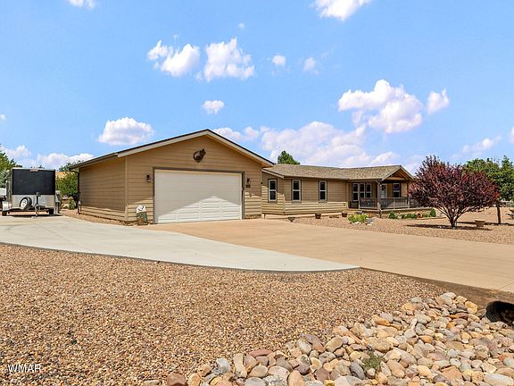 LINDEN TRAILS subdivision in Show Low, AZ is a very nice community offering a peaceful setting for families. This community has amenities like hiking and biking trails, nearby Show Low Lake for fishing and boating, and well-kept parks. This well-kept home, has 3bd 2 ba with 1920 sq ft. The large open living room with vaulted ceilings has plenty of windows for natural light. As you walk around to the dining room, you will see the open kitchen concept offering ample cabinets, a breakfast bar, solid surface countertops, and stainless-steel appliances. This kitchen is perfect for cooking and entertaining guest. The home features a split floor plan, with the master bedroom offering two walk-in closets and the large master bathroom includes dual sinks and a large linen closet. On the other end of the home, you will enjoy 2 other bedrooms with its separate bathroom. Enjoy watching the sunsets from the large covered front deck. The detached two-car garage includes built-in shelves for storage. There is also plenty of room to park your RV's, boats and ATV's.