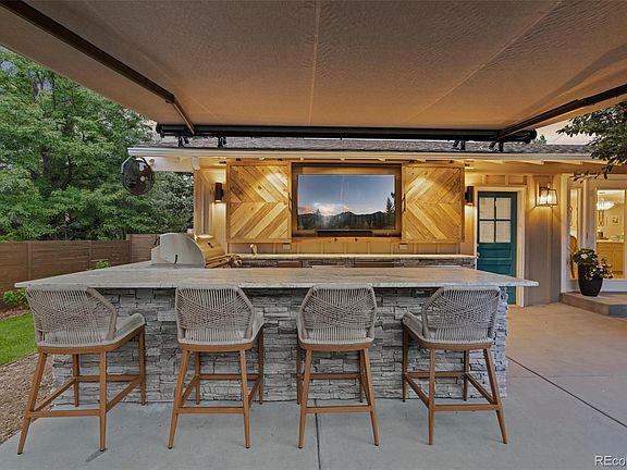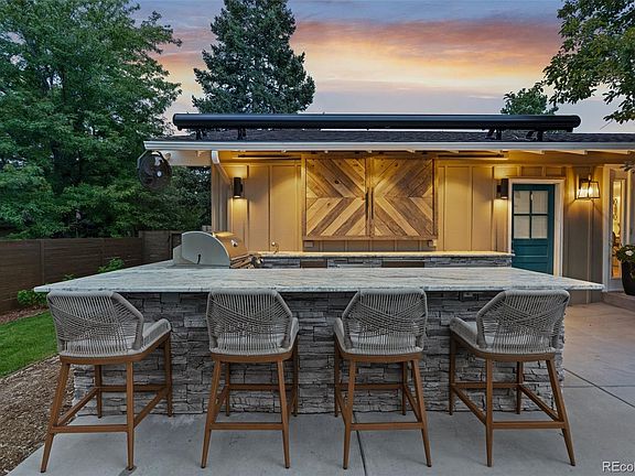 Absolutely stunning, ranch-style home nestled on a peaceful cul-de-sac with serene greenbelt views! This home boasts a remarkable top-to-bottom remodel that surpasses almost $500,000 in recent, custom upgrades. It is the perfect blend of luxury and comfort, offering an exceptional outdoor Colorado living experience, complete with high-end outdoor kitchen, that is sure to impress all your guests! Step inside and discover an inviting, open-concept layout accentuated by the centerpiece—a sprawling kitchen featuring a generously-sized quartz island, an oversized pantry, and a perfect beverage and coffee bar. The basement is a haven for entertainment enthusiasts, boasting a state-of-the-art home theater equipped with surround sound speakers, a custom media center, and a convenient home gym space. Outside, the meticulously landscaped lot is the pinnacle of a Colorado homeowner’s dream! Entertain effortlessly with an outdoor kitchen and bar, handcrafted to fit all your outdoor needs: quartz countertop with a luxurious leathered finish, Blaze 5-burner grill, 50k btu pro boil burner, sink, ice maker, fridge, and custom barn door tv cabinet to hold 75” tv – just to name a few! After your perfect dinner on the patio, relax by the stone-clad gas fireplace or head to the yard game court and enjoy your favorites with friends. This home spares no detail with new upgrades throughout including Hickory hardwood floors, roof, door, windows and treatments, custom cabinetry, Elfa closet systems, elevated lighting, and even a new sewer line. The craftsmanship and attention to detail make this property an exquisite and luxurious retreat.