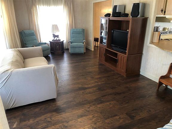 This home is move in ready! It has been kept clean and in good shape. If you like entertaining, you will love the living areas of this home. The living room and formal dining room are oversized. The kitchen is complete with eat in dining plus a breakfast bar. Master Bedroom features a walk in closet and en suite with walk in shower. The guest room also has a walk in closet for plenty of storage for you or guest. If you need more storage or more space there are 2 rooms on the side of the home perfect for storage and tools. Own your own land in a 55+ community! This home is located in Spanish Trails which is conveniently gated and features a swimming pool, shuffleboard and lots of fun activities at the clubhouse. Schedule a showing today to see this move in ready home!