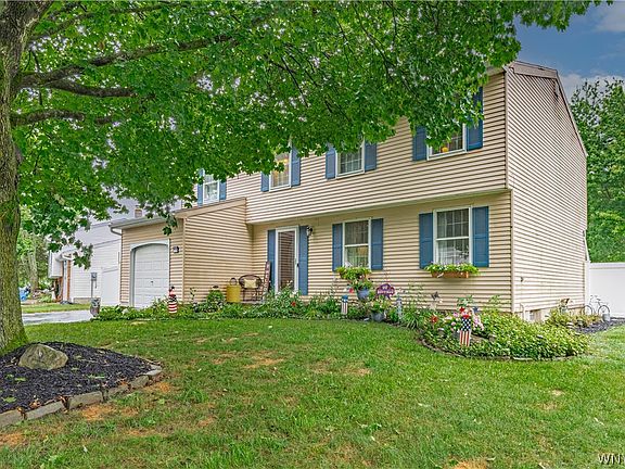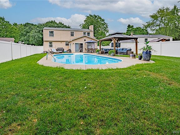 Pristine and well maintained home in established neighborhood. Kitchen New 2019. Granite counters. Large island that fits 4 stools around it with storage. Custom wine rack that holds 40 bottles. Double oven. Microwave and dishwasher new 2023. Large dining area. Engineered hardwood flooring in kitchen and living room. Family rm with gas fireplace. Sliding glass doors to 3 season rm with tile flooring and 2 sets of sliding glass doors. 4 large bedrooms on 2nd floor with expansive closets. New carpeting in primary bedroom with walk in closet. Fenced in back yard (Vinyl fence 2020) with in ground pool. Chlorine. Pacific 1994 Liner, heater, and auto vacuum 4 years old. Safety cover. Professionally opened and closed! Yard includes patio and gazebo for all your gatherings! Partially finished basement w/ glass block windows and back up sump pump. HWT 2020. AC Furnace 2016. Roof 2022. Budget billing is $220.00 NYSEG. Kitchen table, couch in liv rm and coffee bar available for purchase. Seller has Weedman Lawn Care pre paid until the end of season. Open House Saturday, July 20th, 11-1pm. Offers due July 23, 2024 at 11:00 am. NO Escalation Clauses.