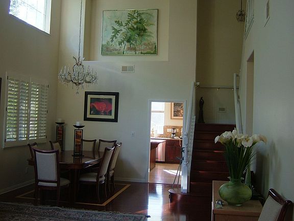 Seller will entertain offers between $799,900-$859,900. Highly upgraded property: Rich double side mahogany front door, granite tile at the entry, travertine floor in the kitchen and rich hardwood floor through out the house, includes stairway (no carpet).. Built-in cabinets in the family room & upstairs hallway. All cabinets have been refinished Dream kitchen with island, top of the line stainless steel appliances, built-in refrigerator, and expensive slab granite countertops with full back splash. Plantation shutters, freshly custom paint. Extra large master suite with cathedral ceiling, balcony, separate shower & roman tub, his & her walk-in closets and absolutely gorgeous PANORAMIC VIEW of the canyon & multy million dollars estates. Pick of the ocean view from the front side upstairs bedroom. Back & side yards cover by Arizona flag stone with nice gazebo & private SPA. Professionally landscaped with palm trees, roses, malibu lights