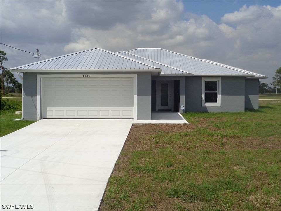 BRAND NEW CONSTRUCTION. FANTASTIC HOUSE WITH PLENTY OF UPGRADES: 3 bedrooms, 2 bathrooms, laundry, cover lanai with 2 car garage. Metal roof. Parquet wood like flooring with upgraded base board throughout the house. Granite on kitchen island, kitchen counter tops and both bathrooms. Upscale cabinets on kitchen and bathrooms. Kitchen with stylish back splash has a luxurious set of GE stainless steel appliances (side by side door refrigerator, flat surface stove with oven, microwave & dishwasher). Fan ceilings on all bedrooms & living room with light fixtures. Mirrors with LED lights on both bathrooms. Master bathroom has an oversize shower with side and ceiling showers, double sinks and private toilet. Master bedroom has a generous walk in closet with LED light mirror. Electric tankless water heater. 4 camera monitoring system and much more upgrades. Located in sought after Port Labelle. The house backyard has a fantastic view of the intersection of Helms Rd and Birchwood Pkwy. Close to shopping centers, restaurants and schools with quick access to Palm Beach Blvd (SR 80) for easy drive to Fort Myers. MAKE THIS YOUR DREAM HOME. A MUST SEE!