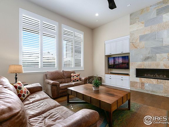 Throw away the cookie cutter! This well-maintained ranch-style home has phenomenal curb appeal, due in no small part to its unique roofline profile and professionally installed landscape. The all-season yard boasts large trees, tall grasses, and colorful flowers that bloom first thing in the spring and continue to highlight the home well into the fall. A large outdoor patio space on the back of the home is the perfect spot to entertain guests, enhanced by a gorgeous custom paver patio and tiered garden beds. Inside, you'll find high ceilings and inviting living spaces, with wood laminate floors and custom plantation shutters throughout the main floor. Fall in love with the gourmet kitchen, bordered on either side by the formal dining room and breakfast nook, and adorned with quartz countertops and floor-to-ceiling cabinets. The incredible walk-in pantry is lined with abundant built-in custom shelving, specially designed to accommodate all your culinary storage needs; a common motif throughout the home, as you'll find the same custom storage solutions in both the garage-adjacent mudroom and the spacious primary suite walk-in closet. A main-floor junior primary bedroom suite, complete with an ensuite bathroom, makes for an excellent guest room, while additional extra large bedrooms on both the upper and lower levels make this home an exceptional choice . The finished basement comes with its own set of storage options and serves as an enormous canvas for unlimited possibilities. Located on a quiet cul-de-sac, this home is a mere block away from the community park and pool, and is surrounded by a plethora of paved neighborhood walking paths. And if that wasn't enough, the home comes with a free annual pass to the adjacent Timnath Reservoir, which itself hosts all kinds of festivities and recreational activities all summer long.
