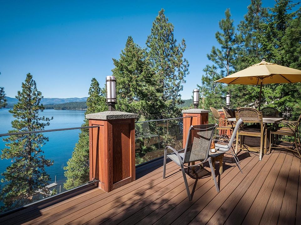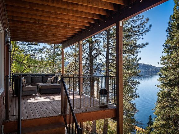 The ever-changing cycle of natures beauty and flurry of outdoor activities play out day after day through the floor to ceiling windows in the open concept living space of this Lake Coeur d'Alene year-round waterfront home. This 4BR, 2BA, 2169SF home is perfect for family and guests alike to spend summers' on Lake Coeur d'Alene. As fall approaches, no need to pack it in, cozy up by one of lovely gas fireplaces and enjoy your favorite novel or take a walk or snowshoe on the peninsula and meet all your wonderful neighbors. High end finishes throughout with wood tongue and grove vaulted ceilings adding a northwest lodge feel. The lower level master bedroom ensuite has it's own private deck to relax with a glass of wine before turning in for the night,