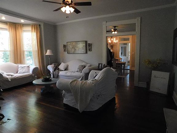 Lovely to Look at - Delightful to live in, Victorian-style home, centrally located. Recently renovated with character of the home maintained. Lovingly updated with crown molding, hardwood floors refinished, custom tilework, stainless appliances, light fixtures, bathroom and kitchen faucets, tile in bathroom for tub'shower surrounds, bathroom vanities/sinks and landscaping. Recent news include roof, furnace and central air, wiring, Pex line plumbing, and vinyl siding. This home offers spacious rooms with 10 ft ceilings, local Limestone counters in kitchen, a lighted attic that offers lots of storage or could be converted to living space, a partial walk-out basement, a rear deck off the kitchen and a large front porch for relaxing! This house sits on a deep corner lot for activities and off-street parking. Limited Home Warranty included!