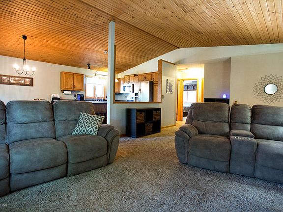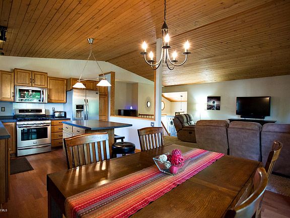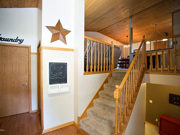 This 4 bedroom home sits on a great lot with mature trees. You are sure to enjoy the large deck, the spacious entry, knotty pine ceilings, updated appliances, and the cozy family room.