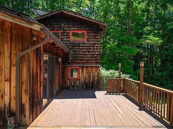 Wittenberg Road is an iconic "Catskills" locale; a beautiful winding country road that connects the Village of Woodstock to Mount Tremper, to Phoenicia; houses of every style and era tucked back from the road and peeking through the trees, hills, and valleys. Wilson state park with local camping and trails is less than 5 minutes from the house. Countless Catskills house-hunters ask for a house on Wittenberg Road - they're rarely available. Seize this opportunity to find a home in this rustic contemporary cottage right where everyone wants to be. One of this home's most striking features is the expansive wrap-around deck that looks into the private woods. The home's green features (solar panels) are on display here, as is the laid-back vibe (plenty of space for a grill, a smoker, tables, a hammock, etc). Spend every night relaxing in the hot tub watching the nature & star show live. Inside is an open layout with exposed timber ceilings, Catskills-style cabinetry, and 3 floors of unique spaces including a large master bedroom (check out the crackle-finish paint), workshop, and den. Currently being used as a one bedroom, this home has lots of rooms to purpose your way. Set on 1.59 acres with 3.1 adjacent acres available: SBL 26.3-1-24.210