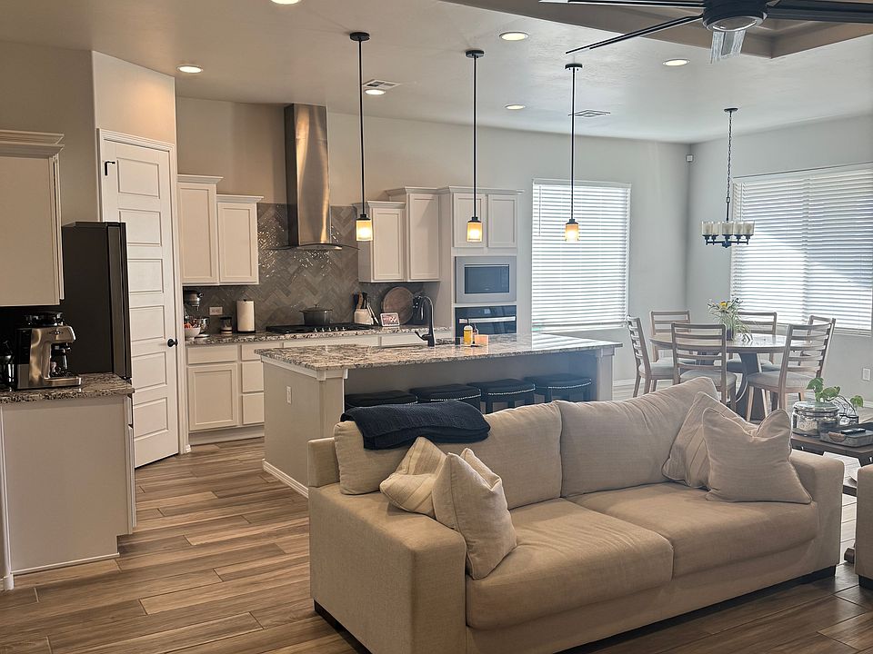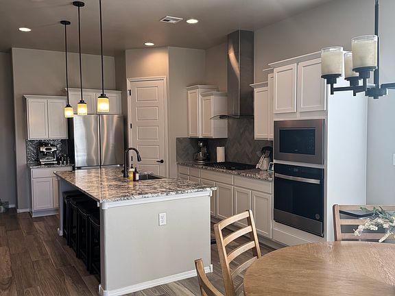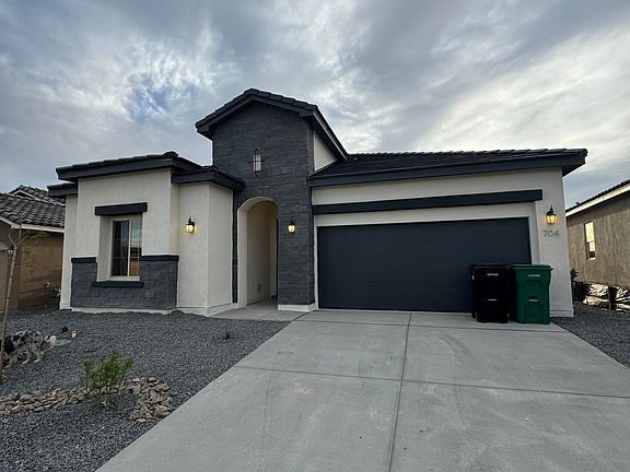 Welcome to your next home in beautiful Rio Rancho! This stunning single-story, 4-bedroom, 3-bathroom home, built in 2024, offers modern luxury and thoughtful upgrades throughout. With 10-foot ceilings, 8-foot doors, and a spacious open-concept layout, this home feels bright, welcoming, and effortlessly functional. The gourmet kitchen features upgraded stainless steel appliances, an oversized island, and ample storage, perfect for both everyday cooking and entertaining. The primary suite is a true retreat with separate oversized his-and-hers walk-in closets and a spa-inspired bathroom that includes a tiled walk-in shower with a rainfall showerhead. Step outside to your beautifully designed backyard, featuring expansive turf and unobstructed sunset views, the perfect setting for evening relaxation, entertaining, or playtime for kids and pets. The yard is fully fenced for comfort and privacy. Additional highlights include a washer and dryer, a two-car garage, driveway parking, upgraded finishes throughout, HOA fees included, and a pet-friendly policy. Located in a quiet, family-friendly neighborhood close to parks, schools, walking trails, and everyday conveniences, this home truly has it all. Homes with this level of style and upgrades don't stay on the market for long, call today for more information or to schedule a viewing! Willing to work out a short term lease if needed.
