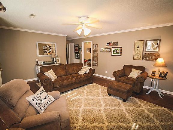 - LIVING ROOM DESC: Fireplace, Crown Mold, Laminate Floor, Ceiling Fan