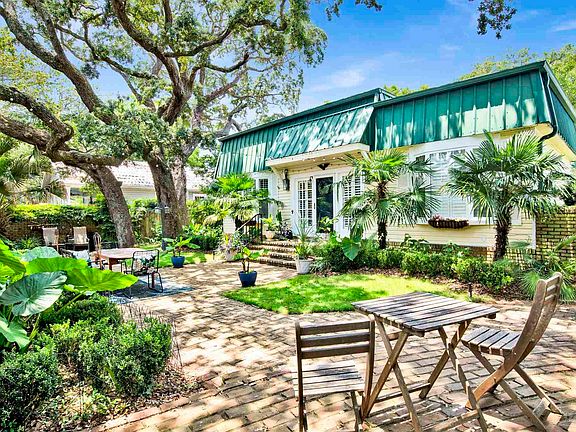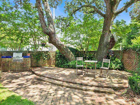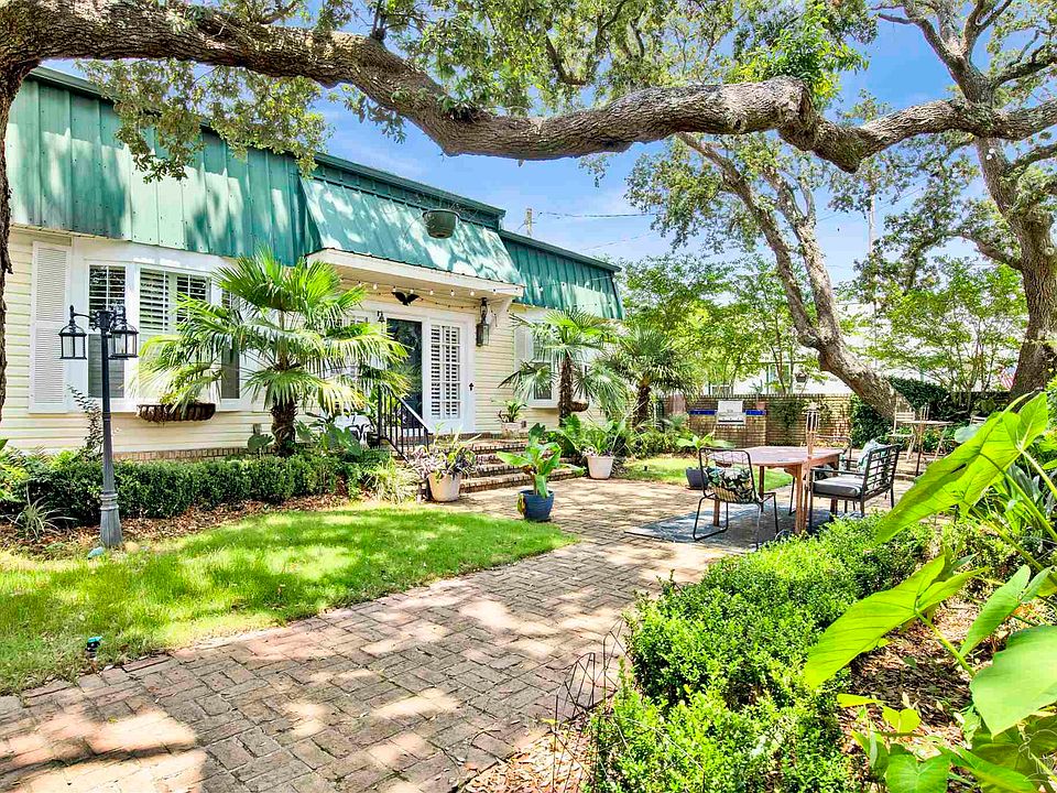 Welcome to this charming Bayshore bungalow, where timeless character meets modern comfort. Behind a private brick courtyard shaded by majestic oaks, you’ll find an inviting outdoor retreat perfect for entertaining or quiet evenings. Inside, a warm brick foyer opens to gleaming Brazilian hardwood floors and spacious living areas, including one with a cozy gas log fireplace. The office features built-in bookshelves, adding both functionality and a sophisticated touch, while modern wallpaper accents bring pops of personality throughout the home. The chef’s kitchen stands out with a Viking range, refrigerator, warming drawer, Bosch dishwasher, custom cabinetry, and a built-in espresso/coffee machine. A formal dining room just off the kitchen is perfect for hosting family and friends. The rear bedroom has been fully renovated with an updated bathroom and French doors leading to a private patio, an ideal spot for morning coffee or catching glimpses of the Blue Angels in practice. Additional features include impact windows, a one-car garage, carport, and detached storage building. Living on Bayshore Drive offers a unique blend of charm and convenience. Take daily walks along Bayshore, where water views provide a peaceful start or finish to your day. Hop on a golf cart and ride less than a mile to the Pensacola Country Club, or take advantage of nearby marinas and the Pensacola Yacht Club, only 1.5 miles away. This home can be sold furnished, making it truly move-in ready. With its flexible layout (including a private 1 bed / 1 bath suite) it also offers rare potential for two Airbnb rentals in one property. Located close to downtown, NAS Pensacola, hospitals, and just a short drive to Pensacola Beach (11 miles) and Perdido Key (14 miles), this home delivers the perfect balance of convenience and Gulf Coast lifestyle.