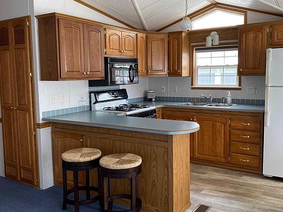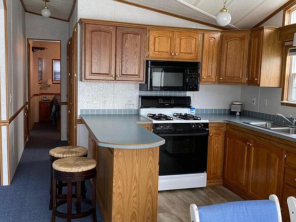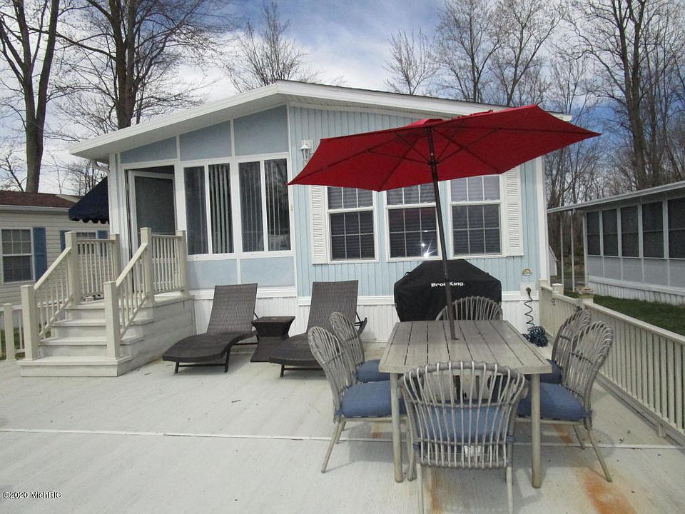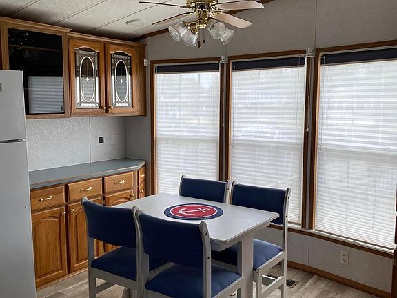 Located on the channel on the water's edge at Coldwater Lake. Brand new dock with 3 boat slips approved for a jet ski, Band new HVAC and Water Heater. This 2001 Park Model at Happy Hollow Resort has high ceilings with a spacious living area, kitchen, dining area with 1 bedroom and 1 bath. Extra large 28 x 25 deck with plenty of space for entertaining and enjoying the outdoors. Full side of windows for a bright and airy feel. Storage Shed and additional space for parking. Happy Hollow Restrooms/Shower, Laundry available and Club House access. Appliances and furniture included.