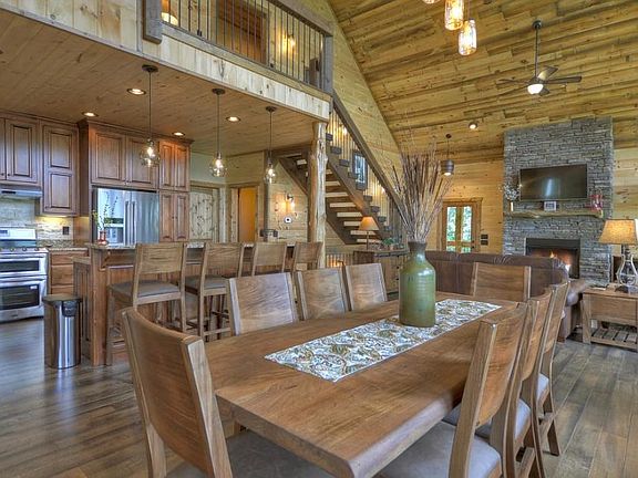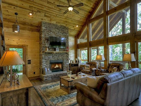 Breathtaking 180 degree views from this Watkins Home Builders new construction. This 4 BR, 4.5 BA rustic timber frame style home is located in the heart of Aska Adventure Area. The great room features vaulted ceilings, wall of fixed glass windows, floor to ceiling rock fireplace, & wood floors. The main level master bedroom offers an in suite bath, granite countertops & walk in tile shower. Large covered party porch boasts a wood burning fireplace & large deck space for outside dining. Upstairs features two master suites, with full private baths (one with a walk in tile shower and the other with a tub shower.) Full finished basement features a large wet bar, fireplace, & great room. As well as an additional bedroom with two built in twin bunk beds for additional sleeping space. And a full bath with a tub shower that can be shared with the rest of the basement. Home is framed up & est. home completion is Dec. 2022.