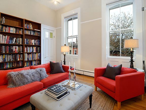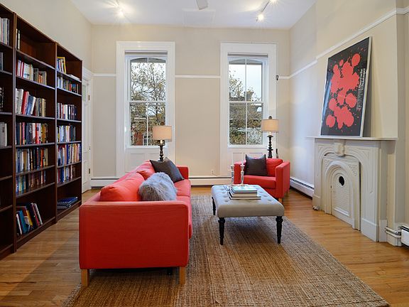 Elegant 2 bed 1 bath condo with bonus den in wide brick rowhouse on one of Hoboken's finest blocks. Lovely old world charm with 12 foot high ceilings, large windows and hardwood floors. Stunning spacious living room with mantel, generous master bedroom. Modern renovated kitchen with stainless steel appliances, formal dining room. Charming 2nd bedroom, ideal for nursery/office. Washer/dryer in condo. Private storage in basement. Large common yard. Perfect midtown Bloomfield Street location.