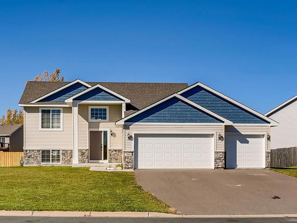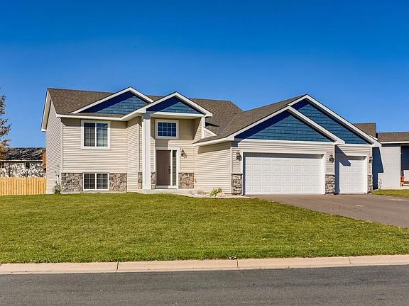 Lovely 4 bedroom, 3 bath, 3 Garage Home with spacious open floor plan with vaulted ceilings, upgrade fixtures throughout and natural lighting. Gourmet kitchen with hard surface floors, center island, granite counters and upgraded stainless steel appliances. Master suite with private bath. Finished lower level with bedrooms, full bath and walk out to fenced back yard and brand new large deck. Owned water softer equipment. A Must See!