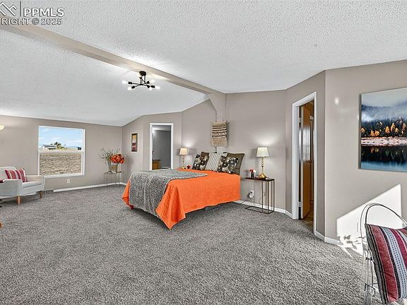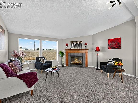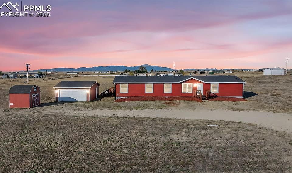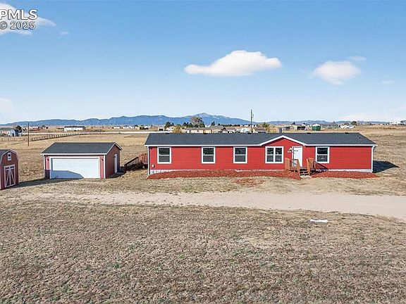Welcome home to one of the quietest areas of the county with neighbors that are the right distance away, not too close & not too far, this is your personal refuge. Spacious 2.64 acre lot, zoned for horses is a perfect sanctuary for your hobby farm! Three Bedroom, two Bathroom Open floor plan with plenty of living & entertaining areas. The oversized kitchen is a baker’s delight with a brand new gas stovetop/oven and microwave oven, plenty of white painted cabinets, island, a window view over the kitchen sink of the front range, including Pikes Peak, and open to informal country seating with a slider door to the backyard. Formal dining area is also just off of the kitchen. This home offers the best in country living overlooking the mountains from the back of the property, including the oversized living room with cozy wood burning fireplace! The master bedroom suite enjoys TWO attached bathrooms, one with a shower, and one with an oversized soaking tub, and a walk-in closet between them. Two car garage and 14x10 Shed with loft provide plenty of storage and room for all your hobbies! And that’s not all: brand new light fixtures, flooring throughout, and fresh interior and exterior paint: 2025. Newer Roof, Windows, Siding, Furnace, Air Conditioning and 14x10 Shed with loft: 2023. Spacious Laundry room and Washer and Dryer stay. This country living has plenty of fresh air and wide open spaces. Bring the horses and livestock and enjoy the peace and serenity of the prairie. If you have been thinking about moving to the country into a comfortable, beautiful and reasonably-priced home, this is the home for you! Located just minutes to schools (including free pre-school), grocery stores, Schriever and Peterson AFB. Put this on your MUST SEE list and come on out to where the antelope play and the stars shine bright at night.