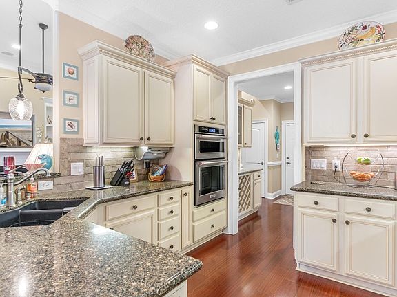 Step into a thoughtfully designed interior featuring 12' ceilings in the great room, foyer, and formal dining area, a coffered ceiling in the dining room, a vaulted ceiling in the front bedroom, and a tray ceiling in the master suite. Crown molding runs throughout the home, complementing the rich hardwood floors and porcelain tile baths. Each bathroom boasts full tile showers with frameless Shower Guard specialty glass and granite countertops, while the master bath offers a garden tub, double vanity, and a fully customized closet. The gourmet kitchen is a chef's dream, featuring custom cabinetry, Silestone countertops, a wall oven with a separate cooktop, soft-close drawers, 42" wall cabinets, and a large breakfast bar. The adjacent breakfast room is spacious enough for a full-sized table. A wet bar with a fridge in the bonus room adds to the home's entertainment appeal. All kitchen appliances and the security system convey. Significant updates have been made to enhance the home's appeal. In 2018, the interior was painted, granite countertops were added in the bathrooms, lighting fixtures in the kitchen and baths were updated, and a new kitchen backsplash was installed. In 2019, the pool was resealed, and a new heater was installed. Most recently, in 2024, a new HVAC system was added. Additionally, the porch was enclosed with climate control, increasing the heated square footage to 3,100. Seaside Plantation is a highly sought after gated community with a resort style community pool & clubhouse, located in the heart of North Myrtle Beach, close to all of the area's famous dining, shopping, golf, and entertainment attractions. You won't want to miss this. Schedule your showing today.
