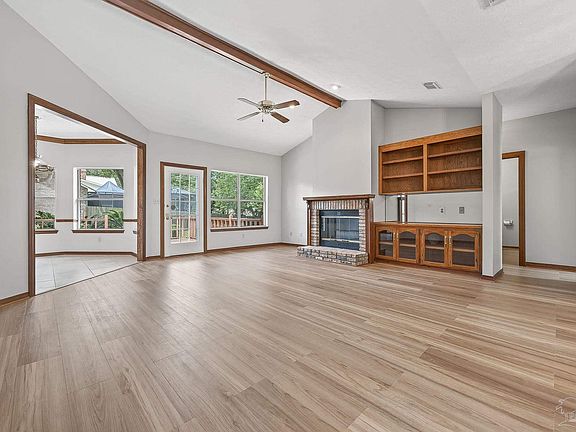 BRING ANY & ALL OFFERS! This all brick, well laid out home is nestled in the adorable neighborhood of Copper Ridge Estates. Situated on an elevated corner lot, the property is surrounded by mature shade trees and lush landscaping giving it fantastic curb appeal! With three bedrooms and two bathrooms, the home offers a functional layout and numerous updates. Recent improvements include a 2024 roof, new gutter guards, brand new flooring, and fresh neutral paint throughout. The bright living room is filled with natural light and overlooks the peaceful backyard and spacious deck. A new wood-burning fireplace with a custom wood mantle adds warmth and character, flanked by built-in bookcases for added storage and charm. The dining area and breakfast nook are open to the living space, creating an easy flow for everyday living and entertaining. The kitchen is tucked in the center of the home, featuring a pantry and plenty of cabinet space. The private primary suite is located at the rear of the home and includes a walk-in closet and an en suite bathroom with double vanities, a jetted tub, and a separate shower. On the opposite side of the home, you’ll find two additional bedrooms and a full bathroom situated between them. Out back, the large open deck is shaded by large trees - perfect for grilling, entertaining, or relaxing in the peaceful surroundings! This home is conveniently located just minutes from NAS Pensacola and I-10, so you’ll enjoy quick access to both the base and major commuting routes. With its updated features, thoughtful layout, and ideal location, this home in Copper Ridge Estates has so much to offer!