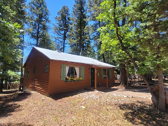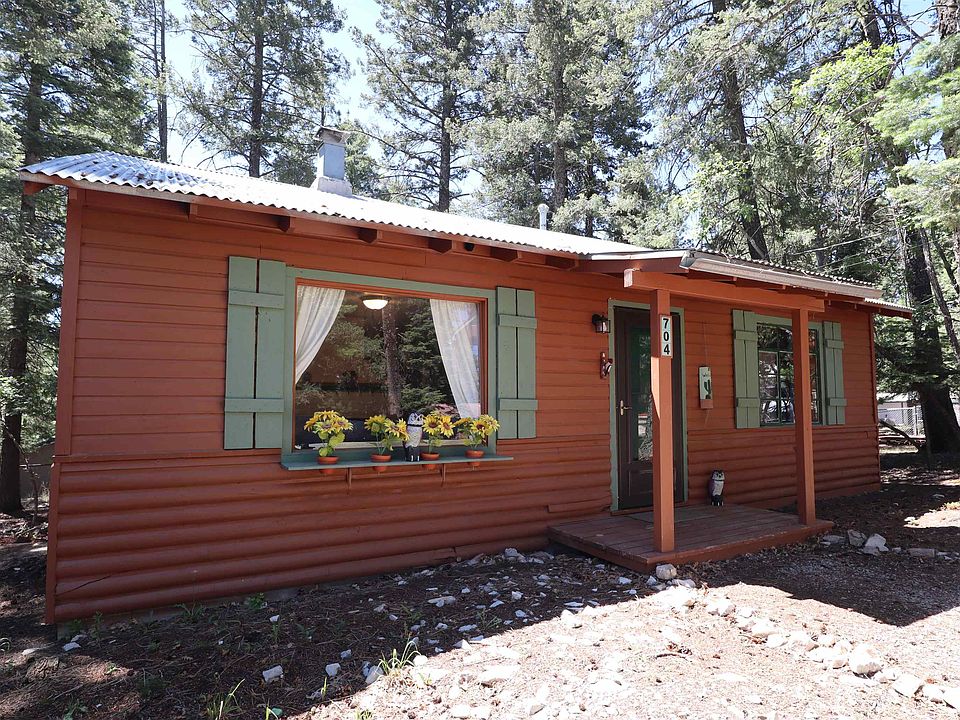 Adorable single level - turnkey cabin located in the Village of Cloudcroft! This beautiful 2-bedroom and 1 bath mountain home will not last. Bathroom and Kitchen updated with new vinyl flooring. Beautiful kitchen backsplash, faucets and new stove hood and cabinets installed. Large primary bedroom, spare bedroom with built two double bunk beds and stacked washer and dryer. Recently the whole exterior was freshly painted. This property has excellent parking with easy year around access. The large deck on the back just invites you to stay and watch the day go by in the nice cool mountain air. Call to schedule a showing today. This one won't last!