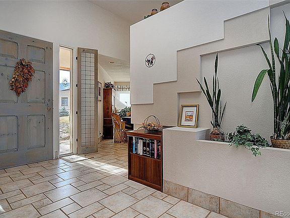 This southwest style home has just been given a fresh coat of interior paint and is ready for move in! There are three bedrooms and two full baths all on one floor. The location is great. It is located close to downtown Salida, is near the golf course and walking trails, and has incredible mountain views all around. The house has radiant in floor hear, skylights in the master bedroom, a walk-in cool pantry, and an evaporative cooler unit on the flat roof. The ceilings are tall in the living room, perfect for watching sunsets over the mountain range. Outside has an enclosed courtyard in the front and another enclosed courtyard in the back yard. There is a lot of privacy while enjoying the outside.