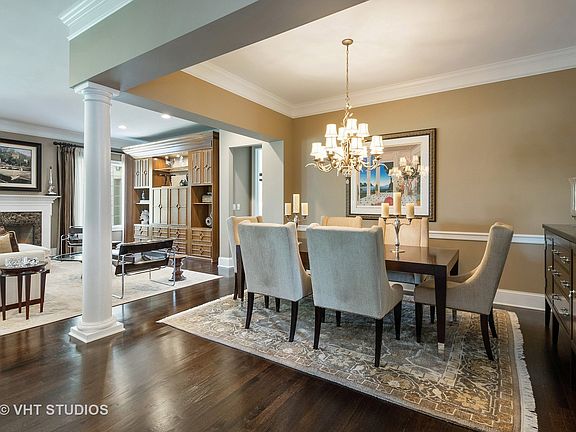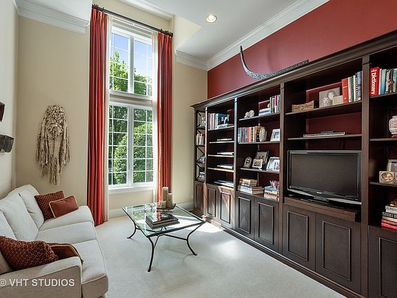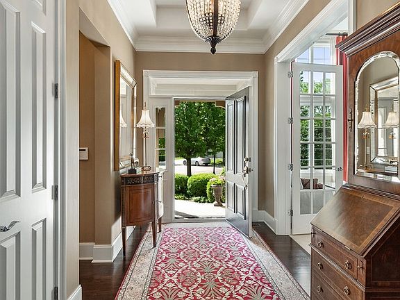 A designer's dream! Exquisite expanded ranch home offers sophistication in detail and design throughout. A seamless blend of elegance and comfortable living, the open floor plan is perfect for entertaining large groups or hosting intimate gatherings. Custom features include 10-foot ceilings, thick moldings, decorative tray ceilings, French doors and architectural columns. Grand foyer is flanked by chic powder room and stunning office with soaring 2-story ceiling and a wall of windows. Gorgeous dining room opens to foyer, kitchen and inviting family room with fireplace. Kitchen with custom cabinetry, tiered breakfast bar, granite counters and stainless steel appliances. Eating area with access to charming patio. Retreat to the master bedroom suite with luxury bath and large walk-in closet with custom organizers. Two additional bedrooms share a Jack & Jill bath. Bring your design ideas for the full unfinished lower level or use the ones already made! Enjoy peace and privacy on this prime interior, cul-de-sac lot with beautiful brick paver patio, fire pit and mature landscaping. A perfect 10!