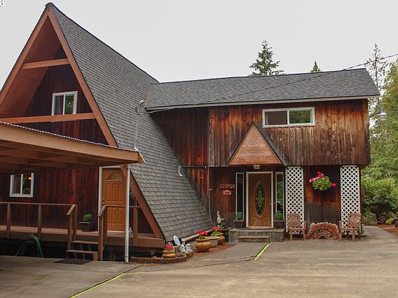 Charming A-frame minutes from the Columbia River on two tax lots. Updated kitchen with Granite counters and Stainless Steel appliances that are included. New laminate flooring, and lifetime Trex decking. Open concept great room with lots of windows and light. All four bedrooms upstairs with deck. Enjoy the view and wildlife from your wrap-around deck! Possible 100% financing available through USDA.