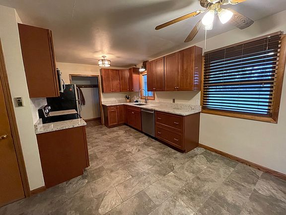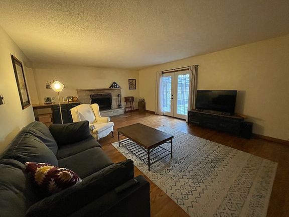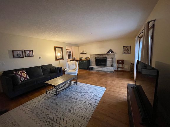 Beautifully updated and ready for new homeowners!! This ranch style home is located on a large corner lot. As you enter this home you are welcomed by wood floors throughout, a nice size living room with a wood burning fireplace and built in bar area for entertaining and spot to put a small refrigerator underneath, patio doors lead to the back concrete patio and enclosed back porch, a gorgeous updated kitchen with granite countertops, 4 bedrooms, 1 and 3/4 baths, all appliances included, a full basement, a two car attached garage and a shed for all your tools. Call today for a showing!
