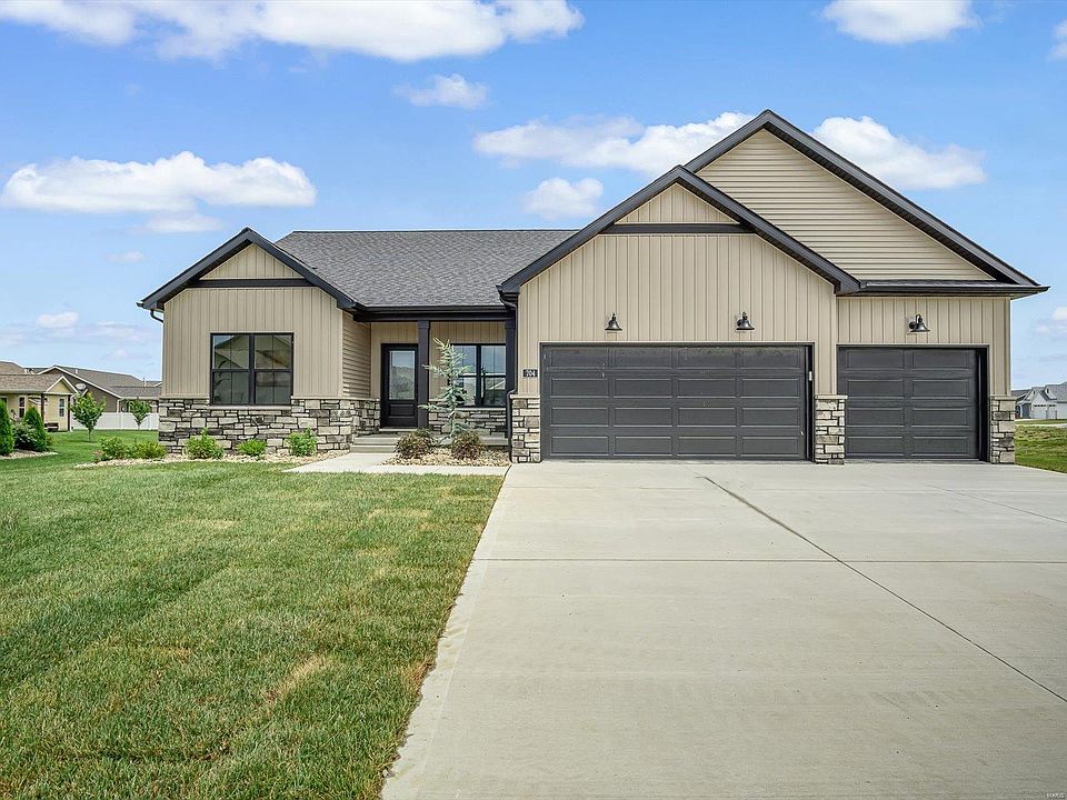 Quality construction and beautifully planned for everyday living, this new construction by Spencer Homes is ready for you to call home! Charming foyer is open to office and half bath and leads to open concept great room. Every day and entertaining are made better with this perfect layout. Great room features amazing natural light and gas fireplace with beautiful tile and wood mantle. Everyone can gather in chef's kitchen with center island and ample work space. Relax in the dining area or step outside to your private covered porch for morning coffee or beautiful evenings. Primary suite is spacious with spa like bath and walk in closet. Two additional bedrooms, full bath, and laundry on the main. Lower level has large family room, 4th bedroom, full bath and plenty of storage as well. Beautiful upgraded selections and products throughout the inside and continued on the exterior with sod in front and back yard and beautiful landscaping. Close to trails, schools, and everything MetroEast!