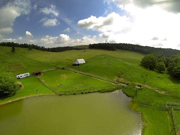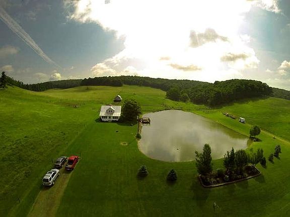 Breathtaking farm featuring 1 ac pond created by several fresh water springs right out of the mountain. Pastoral setting w/fertile farm, pasture, cropland. Ideal setting for organic farming with plenty of water. Farmhouse in good condition. An inviting deck/dock over pond welcomes you to sit & listen to the strong overflow of the gorgeous pond. Barn & other buildings. Long range views of Buffalo.