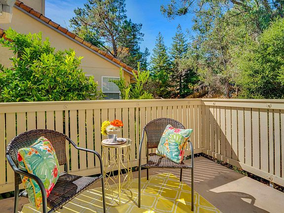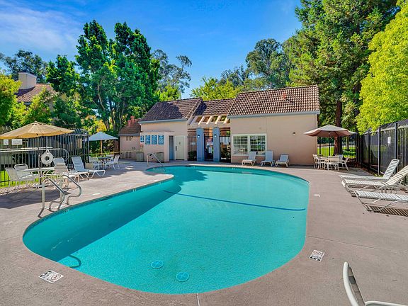 Spectacular Price Improvement! Embrace the comfort and style of this ideally located Hercules condo! Perched on the top floor, this charming unit boasts high ceilings, a cozy fireplace, and laminate flooring, all enhanced by fresh paint throughout. The modern kitchen shines with white cabinetry, stainless steel appliances, and granite countertops. The spacious primary bedroom offers an ensuite bathroom and dual closets, while both bedrooms feature ample closet space. Sunlight pours into every corner, and you'll love relaxing on the private balcony w/views of lush trees. Additional perks include an in-unit stackable washer and dryer, a one-car garage, driveway parking, and 1 permitted space. With a sparkling community pool, community center and a fantastic commuter-friendly location, this condo has it all..comfort and convenience in a desirable community setting, shopping, Transit Center and more. Check it out soon!