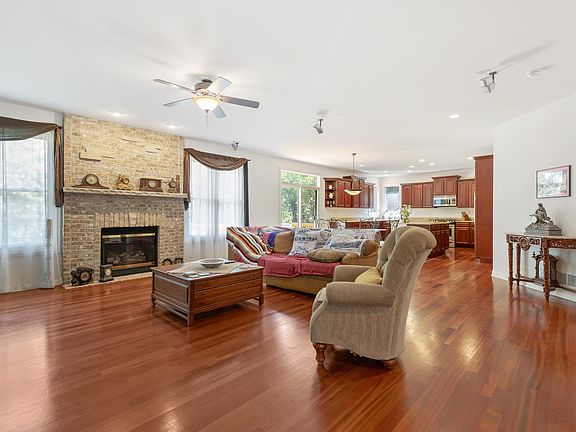 Nice custom ranch on beautiful wooded lot! Open and airy floor plan...kitchen has plenty of cabinet space, center island, granite counter tops and SS appliances! Kitchen overlooks great size family room with brick fireplace. Hardwood floors throughout most of the first floor. Master bedroom has a tray ceiling, bay window, walk in closet and luxury master bath!! Full walkout basement is partially finished just waiting for your finishing touches...roughed-in plumbing for a full bathroom too. Plenty of storage space. Garage has enough room to store 5 cars plus a small work shop area in back. Enjoy the evenings under the pergola and firepit!