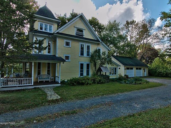 Absolutely exquisite turn of the century Victorian on double lot in Stroudsburg Borough. Glorious light streams through the tall windows making it light, bright and airy. Relax on the wrap around porch and enjoy the mountain view. Enter though the beautiful wood front door to find hardwood floors and original woodwork. Three floors full of beautiful rooms. First floor has family and living rooms both with fireplaces. Formal dining room has pass through to kitchen opening it up for dinners and parties. Second floor has 4 bedrooms and a bath. Master has a walk-in closet and laundry room. Third floor offers the tower room as well a huge bedroom and a nice sized storage area. Two car detached garage with walk-up stairs to huge room above. This home is a must see for Victorian lovers. Very