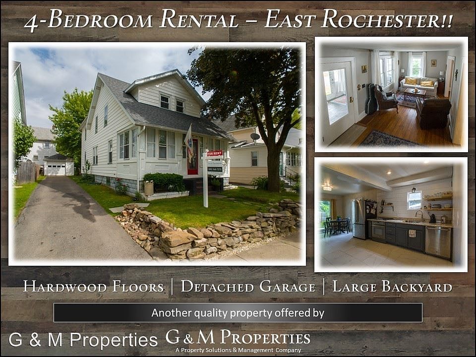 Wonderful 4-Bedroom East Rochester Rental Home - Available Now! - This is one to check out: There is plenty of space throughout this 4-bedroom home that's located in the heart of the Village of East Rochester. Walk up into the front door and you'll find a huge enclosed porch. Flooded with natural light, it's the perfect place to hang out and wave to your neighbors. Inside you'll see hardwood floors throughout the entire house, with an open living room, dining room and a bonus family room off of the back. The kitchen has been updated and expanded, with newer flooring, cabinets and stainless steel appliances. Walk out of the sliding glass doors to your backyard that's spacious and private. There's a detached one-car garage for additional storage as well. Back inside, you'll find 4 spacious bedrooms upstairs, with the master bedroom expanded to include a new sink and bathroom. Downstairs in the basement you have large area for more storage space, in addition to a washer and dryer located in the home for your convenience. You simply can't beat the walkability and sense of community of this East Rochester neighborhood. You're able to walk to all the schools, as well as all the village restaurants, shops, the nearby public pool, splash park, playgrounds and library. This is a rare find in the East Rochester area, and will definitely not last so call TODAY to schedule your walk-through.com This is another fine property that is professionally managed by G & M Properties. You'll love living in your own single-family home, and still have all the benefits of apartment living like 24-hour 1-call maintenance and online rent payment. Monthly Rent starting at $1,550. Please call for details. **NO Smoking** **Credit Check / Background Check Required** No Cats Allowed (RLNE4969862)
