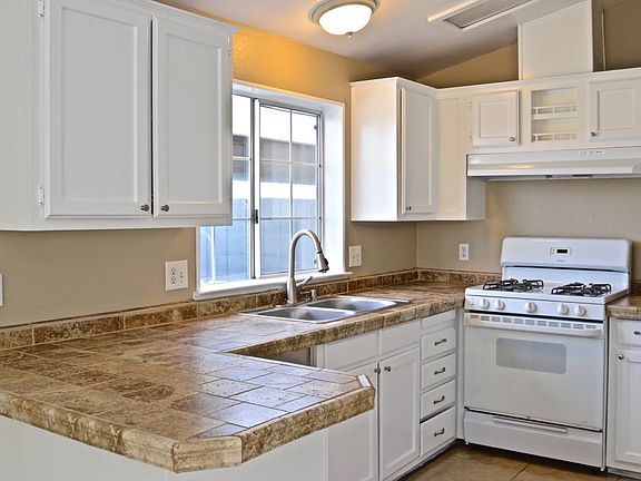 Vista Nueva subdivision, property features tile floors in kitchen and family room, beautiful white cabinets in the kitchen, tile counter tops in kitchen, both bedrooms have carpet, washer and dryer hook ups inside the house, single car garage and a large backyard great for family BBQ's.