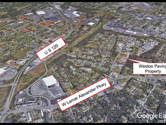 The Weston Paving Properties are located off Home Avenue in Maryville, Tennessee. 4.85 acres located in the heart of Blount County near City of Maryville Operations Center, and Downtown Maryville. Currently home for Weston Paving, improvements include office/warehouse building, equipment shed and materials storage areas, and a community garden area. The Central Community District Zoning allows office, commercial, and high density residential.