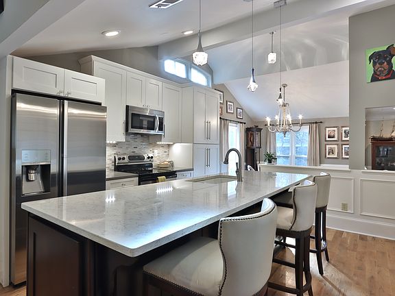 - Kitchen Features: Breakfast Bar, Eat-in Kitchen, Pantry, View to Family Room, Stone Counters, Kitchen Island, Cabinets White