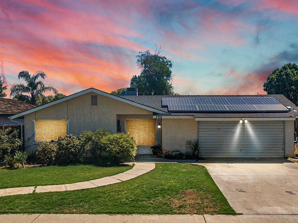 Great Opportunity for a NOR 3 Bedroom 1.75 Bath home. Large Open Great Room Floor Plan! Large Lot, Covered Patio, Newer wood like flooring, Large Open Kitchen with tons of cabinets featuring a 5 Burner Stainless Steel Gas Oven, stainless Steel Sink with stainless steel Faucet, Dishwasher, Microwave, Indoor laundry, Walk in pantry, Dining Room, Large Master bedroom features sliding door to covered patio. Ceiling Fans Throughout, Plenty of storage space and shelves in finished 2 car garage. Front and back yard automatic sprinklers. Leased Solar