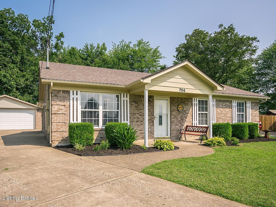 ** Buyers got cold feet. Don't miss your 2nd chance on this great home! ** Fantastic brick ranch home in the Benjamin Woods neighborhood in Hillview! This 3 bedroom, 2 bathroom home features an open floor plan, newer roof, newer water heater, a large 2+ car garage, and a huge lot which backs up to an open field with horses! Although this home has a Louisville address, it's located in Bullitt County. As you enter, you'll notice the dining room, which could also serve as another family room, that leads into an open kitchen/living room area. Highlights include lots of cabinet space, granite counters, a vaulted ceiling, and a large walk-in pantry room. Down the hall you'll find 2 bedrooms, a full bath, and a primary bedroom/bathroom.