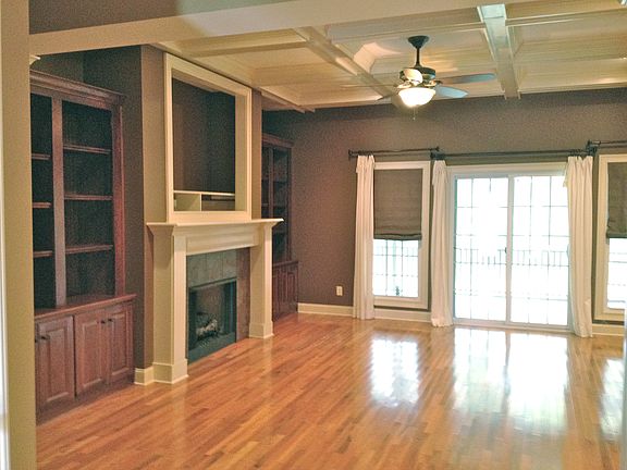- LIVING ROOM DESC: Fireplace, Crown Mold, Wood Floor, Coffered Ceiling, Built Ins