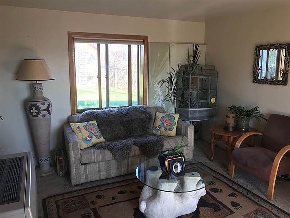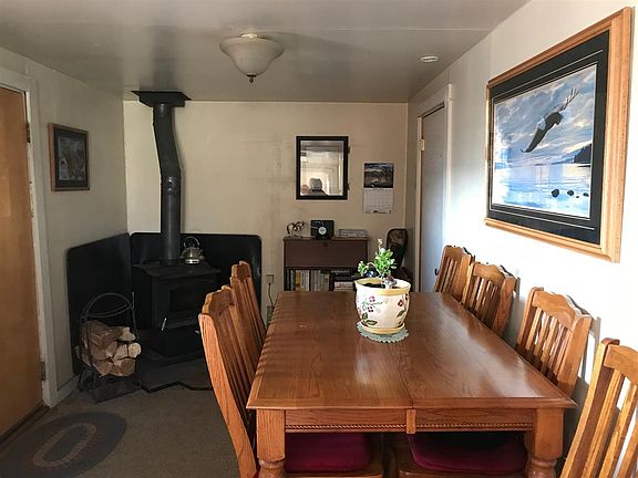 This cozy cabin is in an ideal location on the edge of town overlooking the countryside and a pond. Amenities include newer appliances, newly remodeled bathroom, a 1 car garage with a woodstove, a laundry room and shower, two storage buildings, an outdoor bbq area, plenty of space for a garden, an RV hookup, mature trees and fenced yard. Don't miss out on this gem!