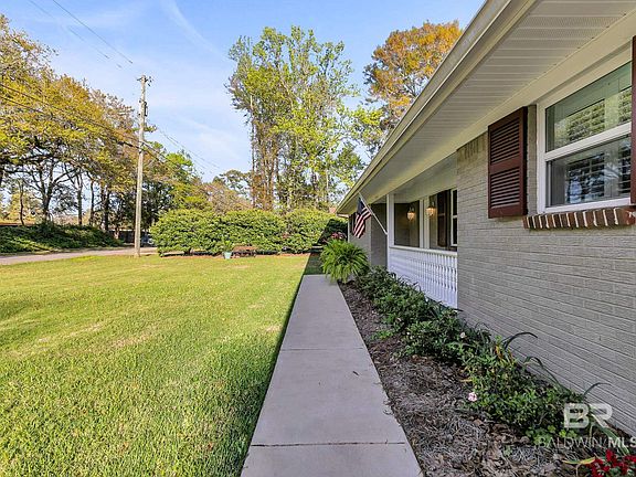 In the heart of Old Towne Daphne, which is considered the commercial area, lies a vintage ranch nestled on a spacious flat lot, centrally located amidst a plethora of attractions. Immerse yourself in the charm of strolling to parades, art exhibitions, local dining establishments, and the picturesque Mobile Bay. Situated on Lea Avenue, a thoroughfare intersecting Old County Road and Main Street in Daphne, this residence offers proximity to Lott Park for engaging in pickleball, tennis, or softball. Many churches and schools along with shopping centers make this location the location. Even private schools such Christ the King and Bayside Academy are accessible by golf cart which make trips easier for school activities.Inside, the traditional ranch layout encompasses an updated kitchen, a spacious laundry room, and a delightful sunroom that overlooks the serene backyard. The interiors are adorned with plantation shutters and luxurious vinyl plank flooring, preserving the home's classic allure. Noteworthy vintage elements include the bathrooms, featuring retro blue 4x4 wall tiles in one and a pink 4x4 tiled shower in the primary bathroom. The home's enduring appeal is accentuated by a durable metal roof, a painted brick facade, and functional shutters, enhancing its curb appeal. Meticulously maintained, seize the opportunity to schedule a viewing of this exceptional property today.